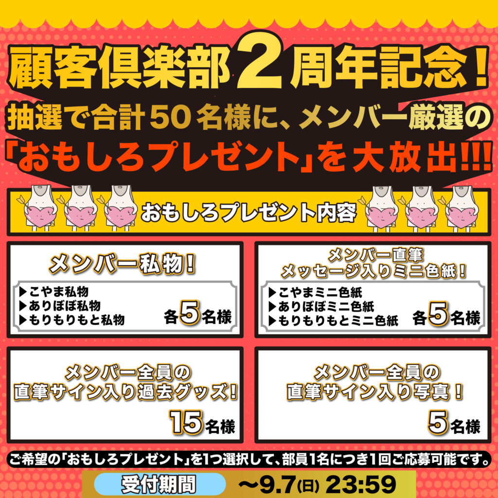 顧客倶楽部 2周年記念!抽選で合計50名様に、メンバー厳選の「おもしろプレゼント」を大放出!!!