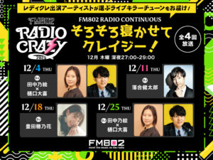 ●12.4(木) 27:00〜29:00 FM802「RADIO CONTINUOUS そろそろ寝かせてクレイジー!」